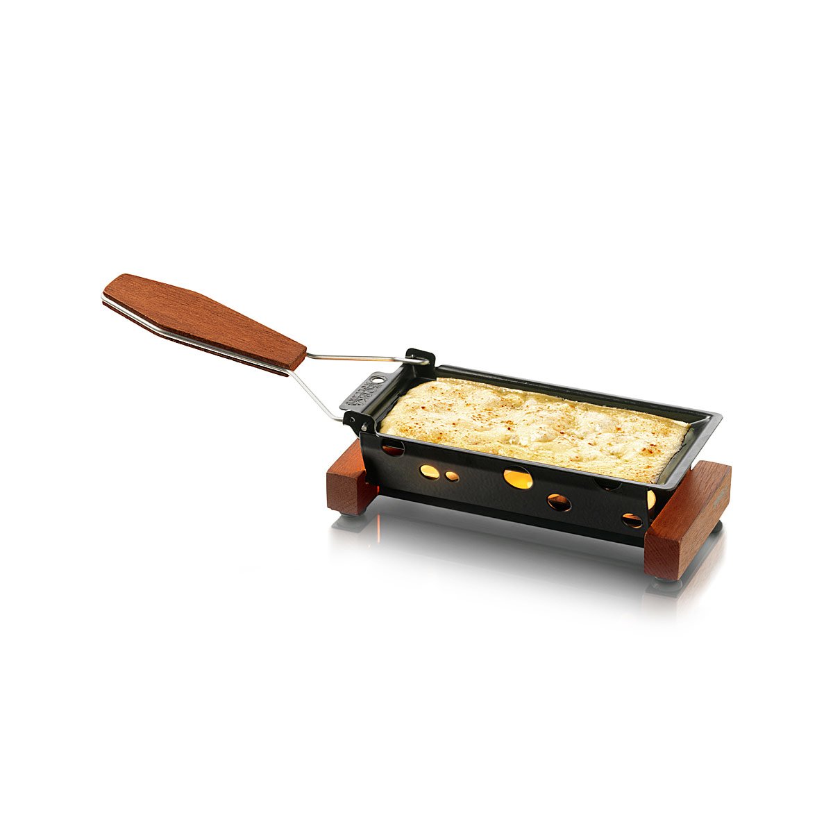 Melted cheese is often an accompaniment on grilled foods. It’s great with toasted bread, burgers, grilled tomatoes, Bratwurst and even Quesadillas done on the grill. With this portable raclette, the grill master can have his favorite cheese melting right beside him while grilling any or all these foods.